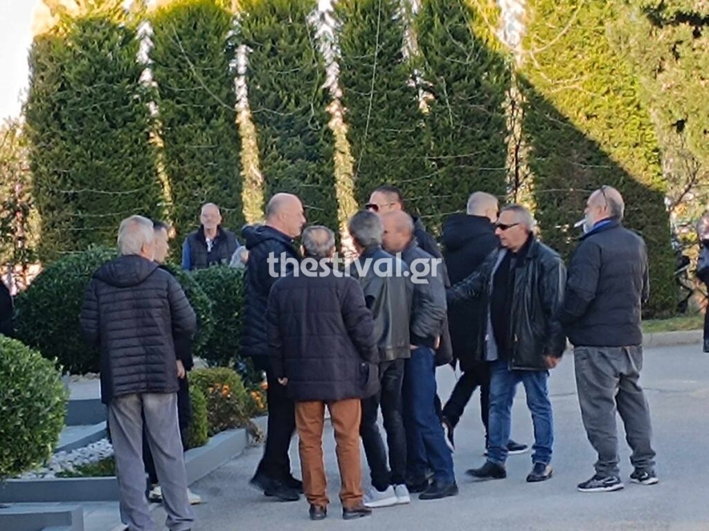 Φίλοι και συγγενείς βρίσκονται εκεί για να αποχαιρετήσουν τον σπουδαίο λαϊκό τραγουδιστή. Μεταξύ αυτών είναι ο δήμαρχος Βόλου, Αχιλλέας Μπέος και ο Γενικός Γραμματέας Κ.Ο. της Ν.Δ. Σταύρος Καλαφάτης.