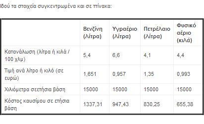 · Την κατανάλωση ενός αυτοκινήτου. Η πρακτική δείχνει ότι ένα βενζινοκίνητο καταναλώνει λιγότερο καύσιμο για να διανύσει 100 χιλιόμετρα σε σχέση με ένα ΙΧ το οποίο κινείται με υγραέριο. Αυτός ο παράγοντας έχει ληφθεί υπόψη κατά τη σύνταξη του πίνακα που ακολουθεί (φυσικά θα πρέπει να ληφθεί υπόψη το μοντέλο του ΙΧ αλλά και ο τρόπος οδήγησης)