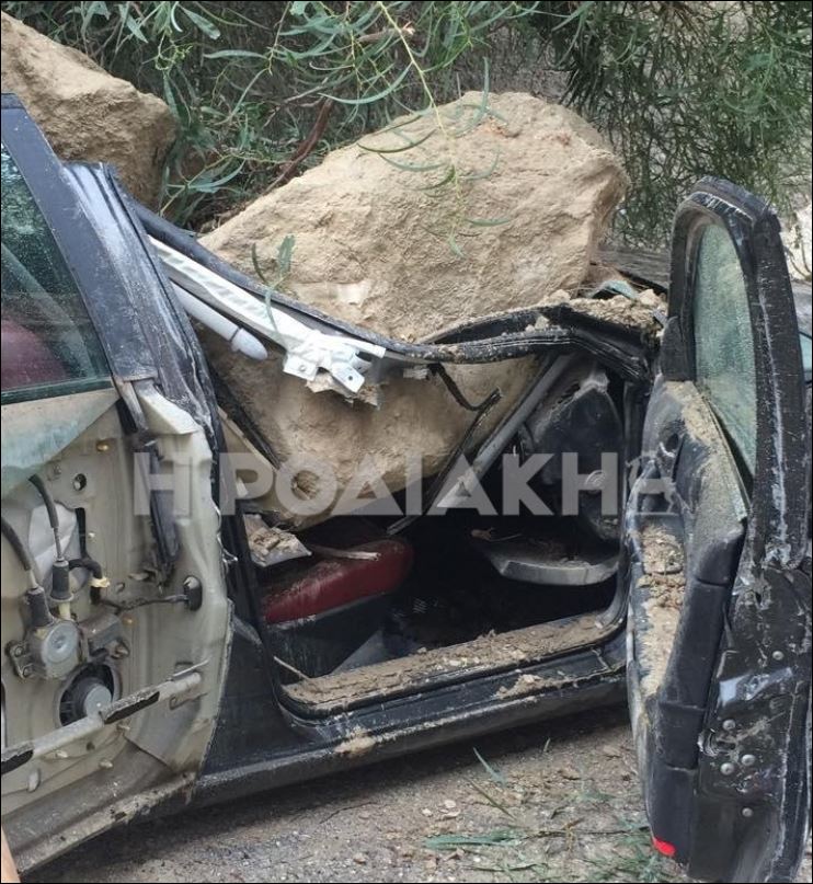 Την τύχη με το μέρος του είχε ο οδηγός ενός οχήματος και οι συνεπιβάτες του, την παραμονή της Πρωτοχρονιάς στην περιοχή της Λάρδου, στην Ρόδο, καθώς μόλις βγήκαν από αυτό καταπλακώθηκε από βράχους.