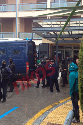 Με συνοδεία ΕΚΑΜ μεταφέρεται ο Νίκος Ρωμανός από το νοσοκομείο Γεώργιος Γεννηματάς όπου νοσηλεύθηκε τις ημέρες που έκανε απεργία πείνας, στις φυλακές Κορυδαλλού μετά από τη σύμφωνη γνώμη και των θεραπόντων ιατρών.