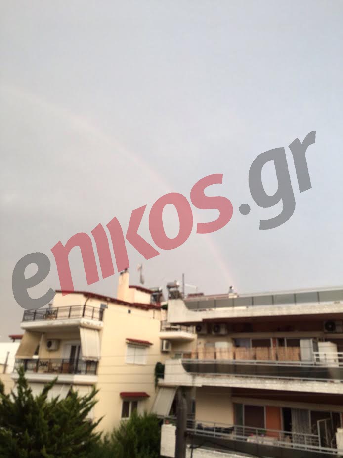Ένα εντυπωσιακό ουράνιο τόξο σχηματίστηκε πριν από λίγη ώρα, πάνω από το Περιστέρι Αττικής.