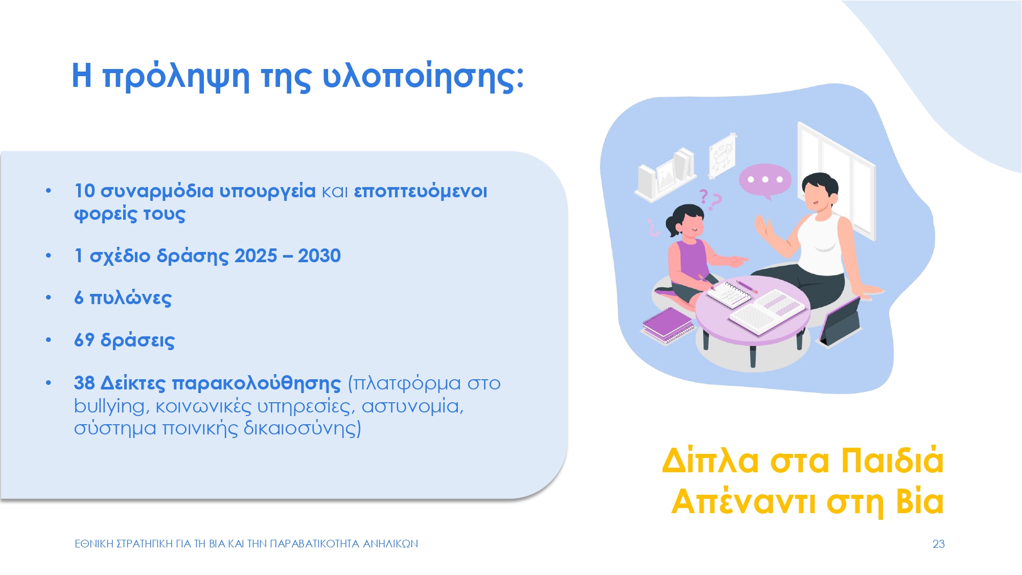 Δείτε ΕΔΩ αναλυτικά Εθνική Στρατηγική για την Πρόληψη και Αντιμετώπιση του φαινομένου της βίας ανηλίκων