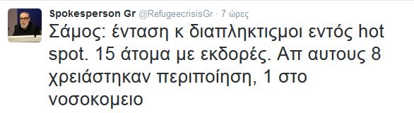 Με μήνυμά του στο Twitter, ο εκπρόσωπος του Συντονιστικού Οργάνου Διαχείρισης της Προσφυγικής Κρίσης Γιώργος Κυρίτσης, ενημέρωσε πως από τα επεισόδια υπήρξαν 15 τραυματίες εκδορές, οκτώ εκ των οποίων χρειάστηκαν περαιτέρω περιποίηση, με ένα άτομο να μεταφέρεται στο νοσοκομείο.