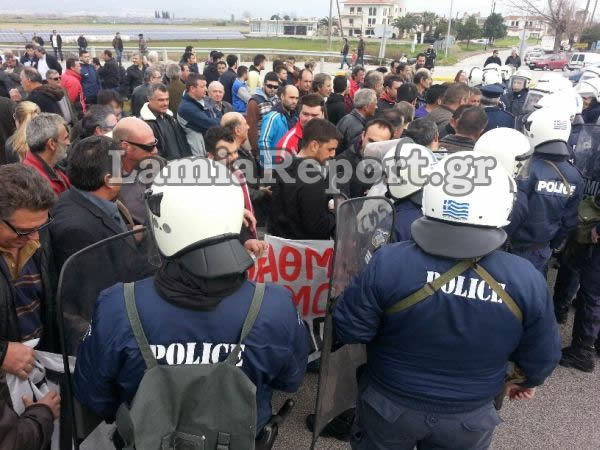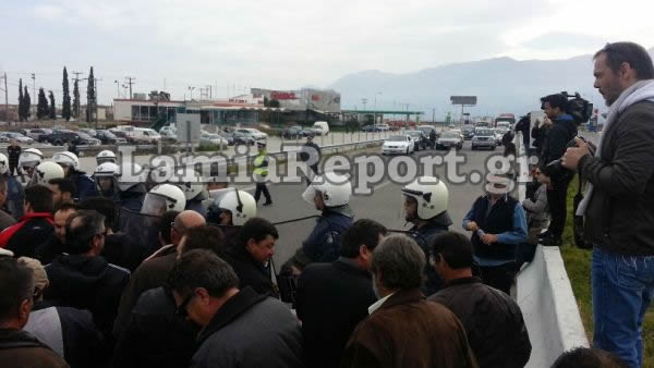 Οι αγρότες άφησαν τα τρακτέρ στο χώρο της Έκθεσης στη Λαμία και βγήκαν στην εθνική οδό στο ύψος της Ανθήλης, όπου και πάλι τους περίμεναν τα ΜΑΤ, μοίρασαν ενημερωτικά φυλλάδια στους οδηγούς και έκλεισαν για 30΄ λεπτά περίπου την εθνική οδό.