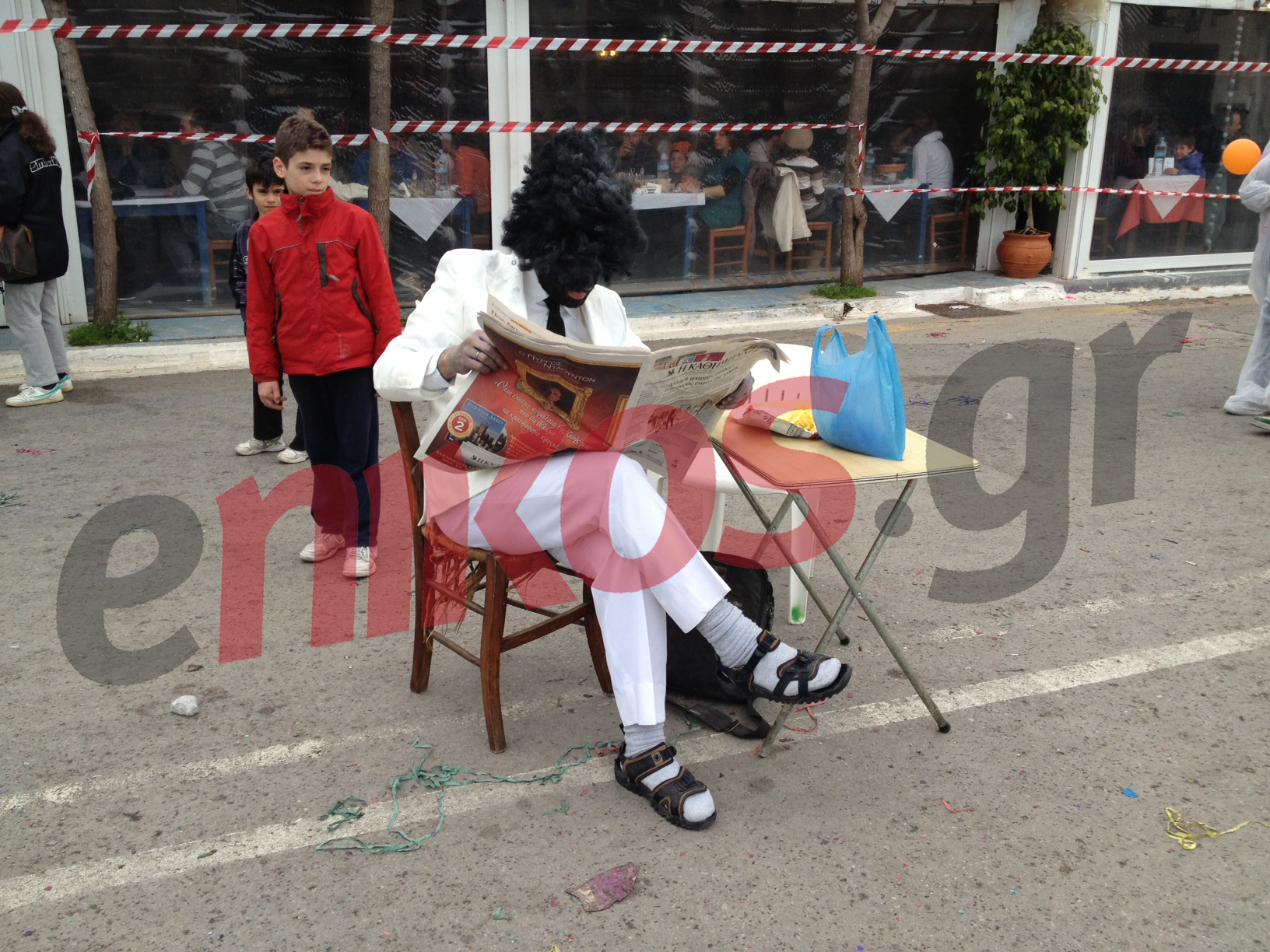 Μετά ακολουθεί το καρναβάλι με άρματα, μασκαρεμένους καρναβαλιστές και ορχήστρες με βιολιά και νταούλια ενώ το αποκορύφωμα της αποκριάς είναι τα Κούλουμα που γίνεται το αλευρομουτζούρωμα.