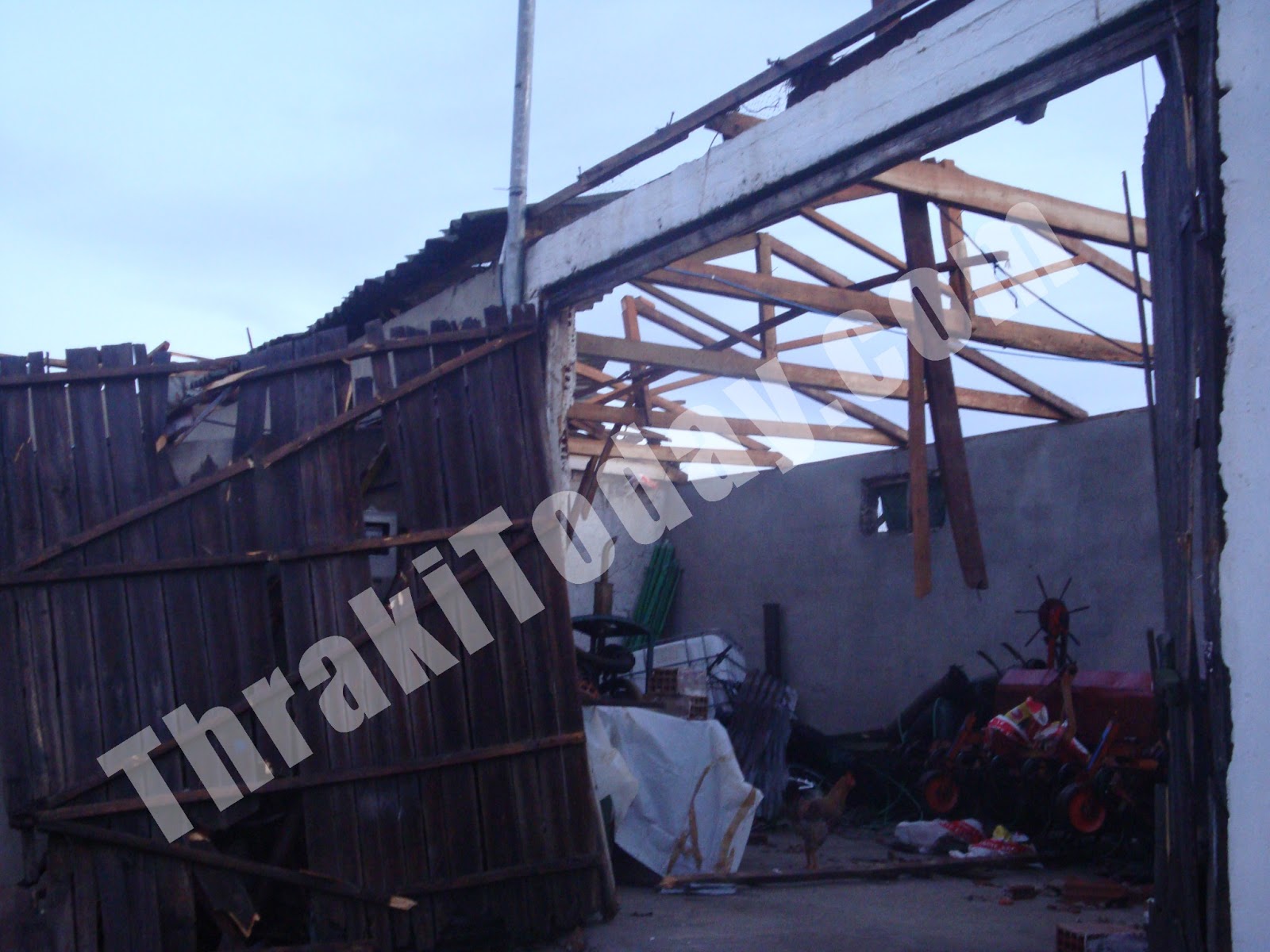 Ο ανεμοστρόβιλος, που ξεπερνούσε σε ύψος τα 30 μέτρα, παρέσυρε τα πάντα στο διάβα του, γκρεμίζοντας στέγες από σπίτια και αποθήκες αφήνοντας παράλληλα το χωρίο χωρίς ρεύμα και σταθερή τηλεφωνία.