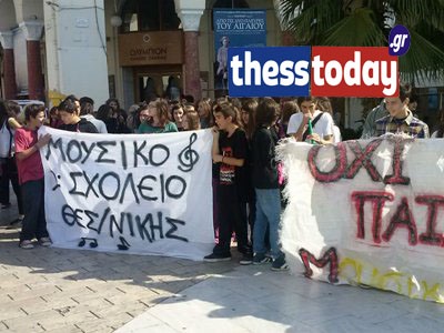 Στην πλατεία Αριστοτέλους διαμαρτυρήθηκαν μαθητές του Μουσικού Σχολείου Θεσσαλονίκης ενάντια στην υποβάθμιση της δημιουργίας και της τέχνης από πλευράς της Πολιτείας.