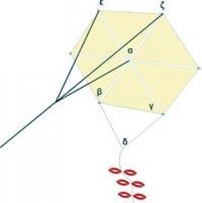 4. Σηκώστε τον χαρταετό και περάστε το σπάγκο που κρέμεται από το κεντρικό άξονα, μέσα από το κέντρο του σώματος (σχήμα 1, σημείο α), στην άλλη πλευρά του χαρταετού (είναι τα κεντρικά ζύγια του χαρταετού, απέναντι από τα ζύγια της ουράς). Στη συνέχεια περάστε τις άκρες από τους δύο σπάγκους που κρέμονται στις τρύπες από τα πηχάκια (σχήμα 1, σημεία. ε & ζ) και σχηματίστε δύο κόμπους (όσο πιο άκρη γίνετε). Θα πρέπει τα κεντρικά ζύγια να σχηματίζουν τρία ισόπλευρα τρίγωνα. Έστω (η) το σημείο που ενώνονται οι σπάγκοι στα κεντρικά ζύγια. Θα πρέπει: