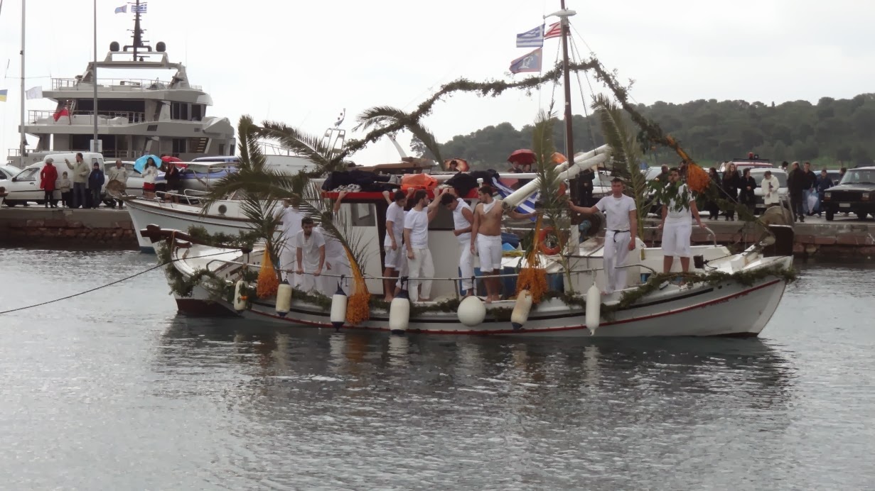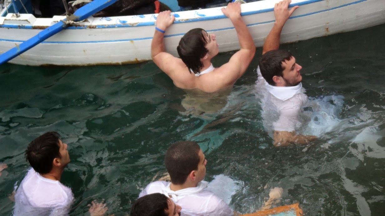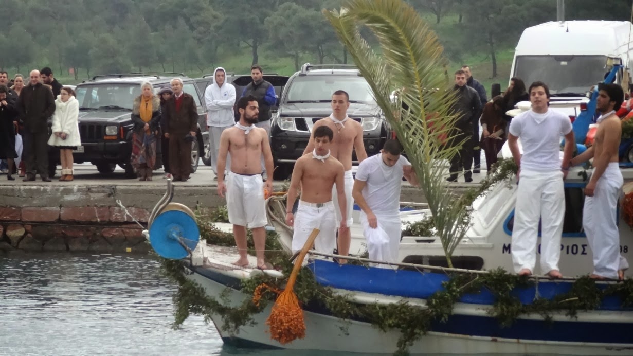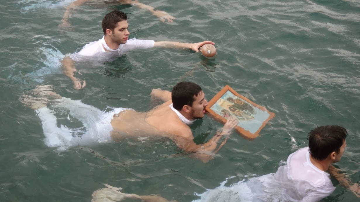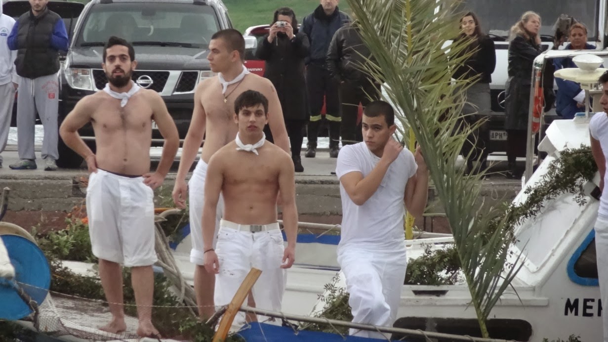 Νέοι με την παραδοσιακή ναυτική φορεσιά, αναβίωσαν για μια ακόμα χρονιά το έθιμο δεκαετιών, «Γιάλα –Γιάλα», έπεσαν στα νερά και ανέσυραν τον Τίμιο Σταυρό και την εικόνα της Βαπτίσεως του Χριστού.