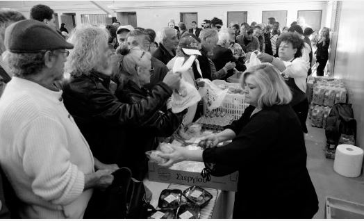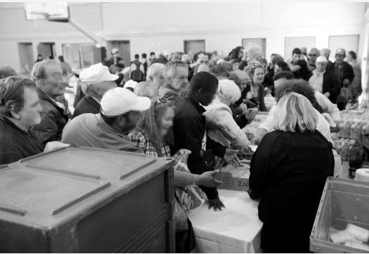 Χίλιες ανθρώπινες φιγούρες σχημάτισαν ουρά έξω από το Ρουφ. Όλοι τους έσπευσαν να εξασφαλίσουν το συσσίτιο της Λαμπρής.