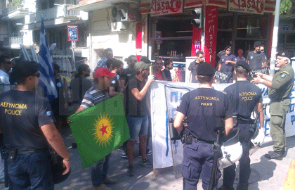 Οι φοιτητές, που φώναζαν συνθήματα και κρατούσαν πανό και ελληνικές σημαίες, προσπάθησαν να προσεγγίσουν το προξενείο και απωθήθηκαν από τους αστυνομικούς, που έκαναν χρήση των γκλομπ, όπως και χημικών.