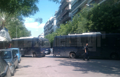 Η κίνηση στην Αγίου Δημητρίου είχε διακοπεί για πολλή ώρα.Κλούβες ήταν παραταγμένες στο πάρκο Μανωλάκου Κυριακού και στα στενά γύρω από το προξενείο προκειμένου να εμποδίζουν την κυκλοφορία