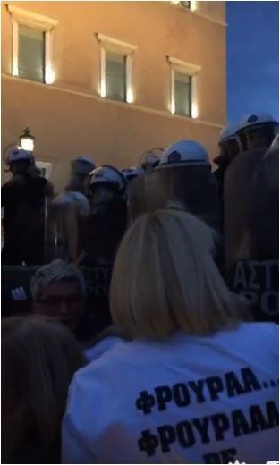 Η Ραχήλ Μακρή, βρέθηκε μαζί με διαδηλωτές έξω από το κτίριο της Βουλής. Η πρώην βουλευτής, μαζί με μία ομάδα ατόμων, φορούν μπλούζες οι οποίες στο πίσω μέρος τους γράφουν «φρουρά, φρουρά!», σύνθημα εμπνευσμένο από όσα διαδραματίσθηκαν την περασμένη Δευτέρα στην Ολομέλεια της Βουλής, όταν ο Μάκης Μπαλαούρας καλούσε απεγνωσμένα τη φρουρά της Βουλής να επέμβει μετά την επίθεση του Ηλία Κασιδιάρη στον Νίκο Δένδια.