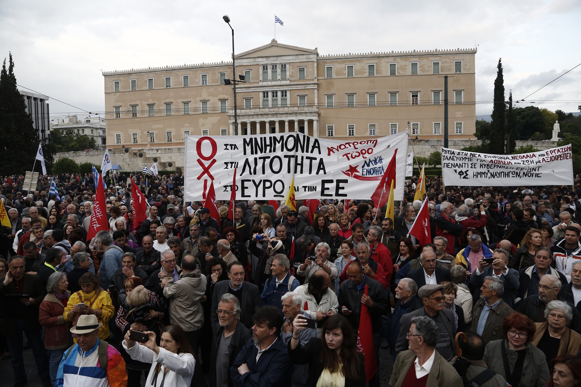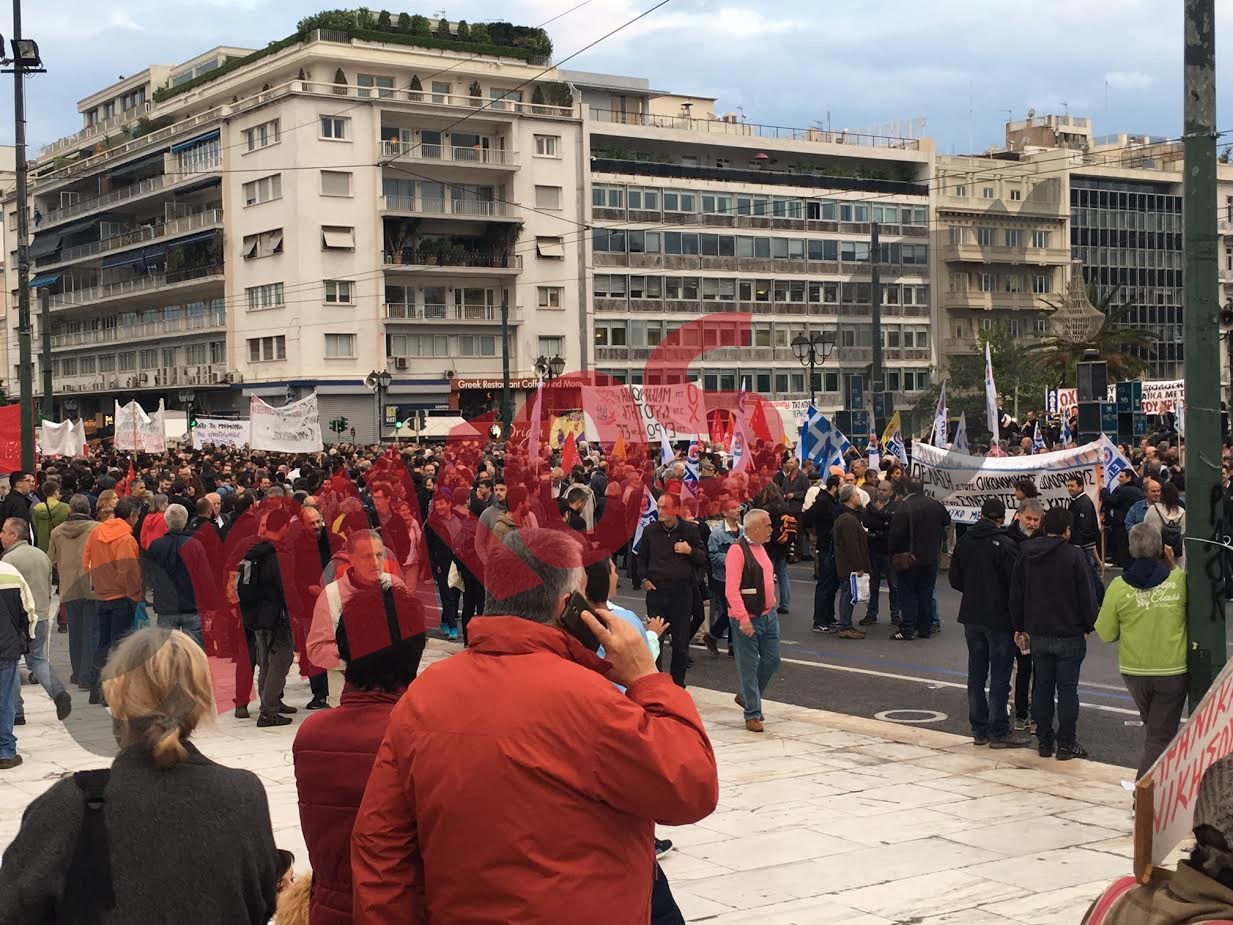 Νωρίτερα στο Σύνταγμα έξω από τη Βουλή είχαν φτάσει διαδηλωτές από το ΠΑΜΕ, τη Λαϊκή Ενότητα, ΑΝΤΑΡΣΥΑ και ΕΠΑΜ και μηχανικοί του ΤΕΕ , αλλά και όσοι μετείχαν στο συλλαλητήριο των ΓΣΕΕ-ΑΔΕΔΥ. Διαδηλωτές με πλακάτ, πανό και σημαίες στα χέρια είπαν βροντερό “όχι” στα νέα μέτρα που φέρνει το πολυνομοσχέδιο.