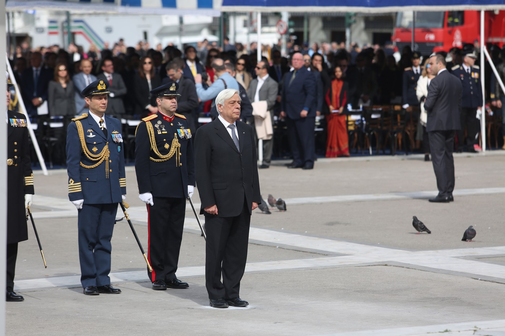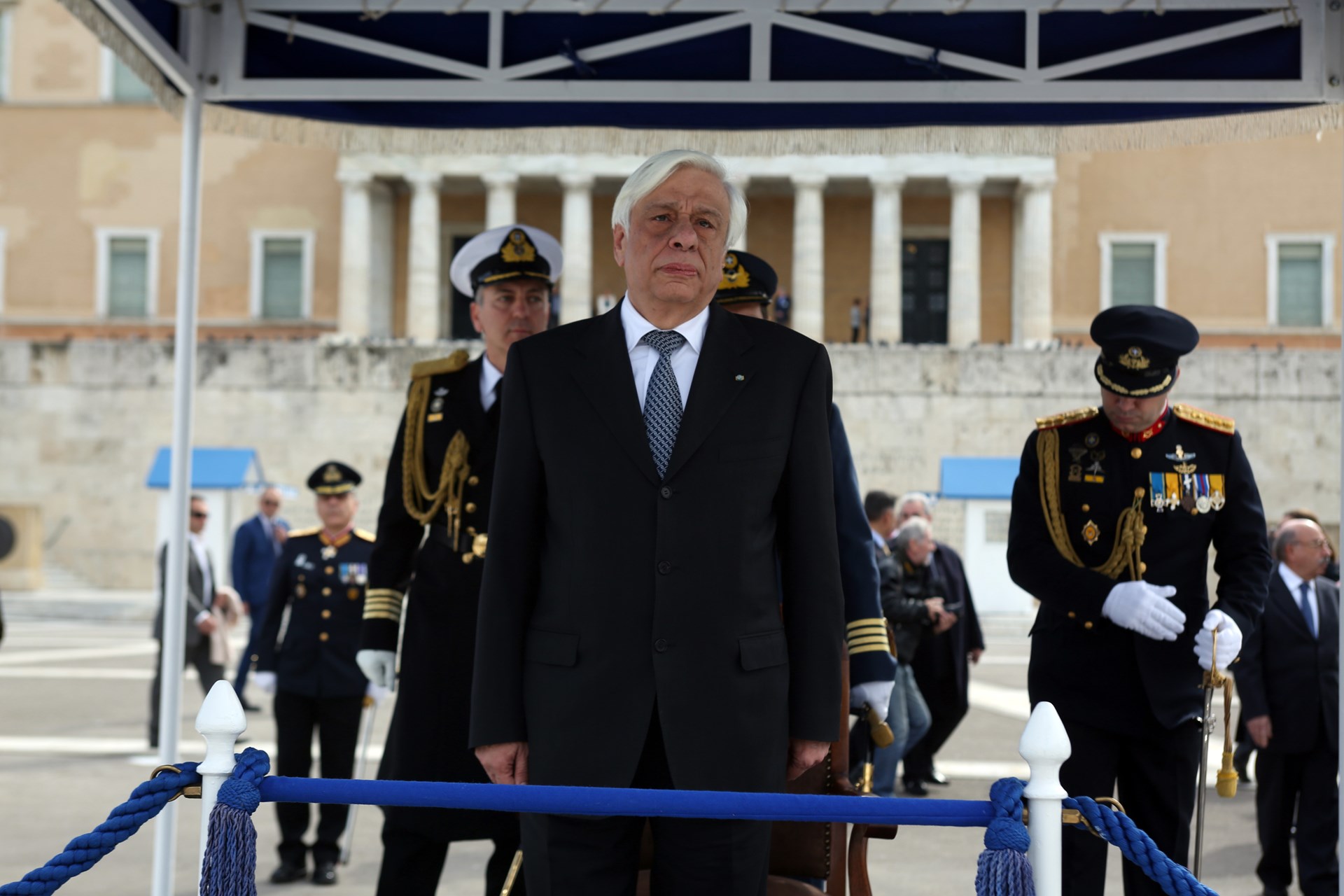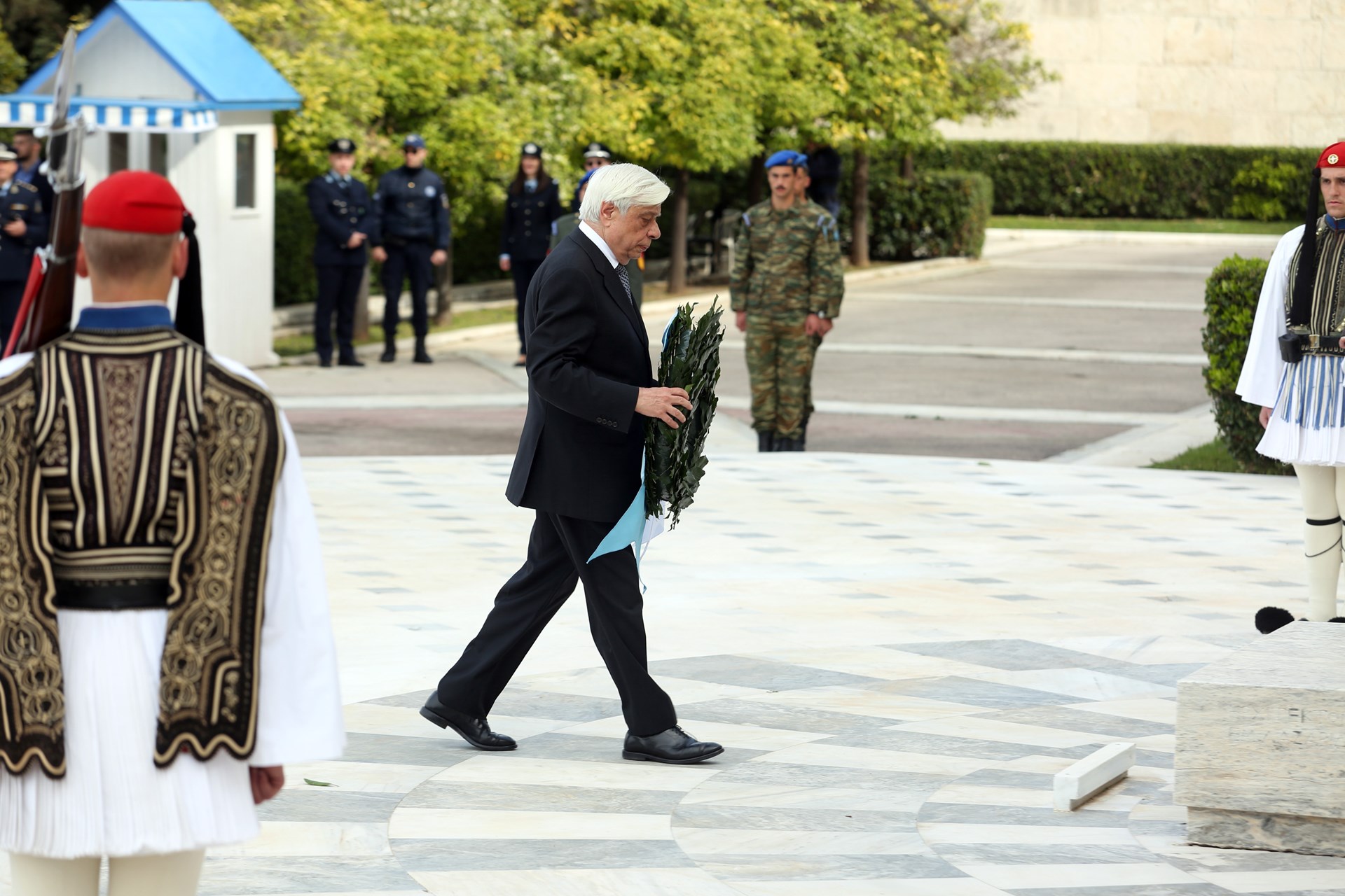 Προηγουμένως ο Πρόεδρος της Δημοκρατίας κατέθεσε στεφάνι στο μνημείο του Αγνώστου Στρατιώτη, έγινε ανάκρουση εμβατηρίου και του Εθνικού Ύμνου, και στη συνέχεια επιθεώρησε το τιμητικό άγημα των Τριών Όπλων των Ενόπλων Δυνάμεων. Ακολούθως ο κ. Παυλόπουλος χαιρέτισε την παρευρισκόμενη πολιτική, θρησκευτική, δικαστική και στρατιωτική ηγεσία της χώρας.