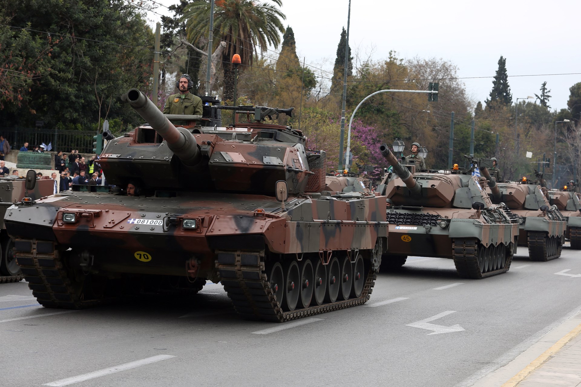 Πάνω από το χώρο της παρελάσεως πέταξαν σε άψογους σχηματισμούς αεροσκάφη και ελικόπτερα όλων των τύπων των τριών κλάδων των Ενόπλων Δυνάμεων και των Σωμάτων Ασφαλείας. Επιβλητική ήταν μεταξύ άλλων η παρουσία των αρμάτων μάχης Λέοπαρντ. Σε ακριβείς σχηματισμούς παρήλασαν τα τμήματα των παραγωγικών σχολών των τεσσάρων κλάδων των Ενόπλων Δυνάμεων και των Σωμάτων Ασφαλείας.