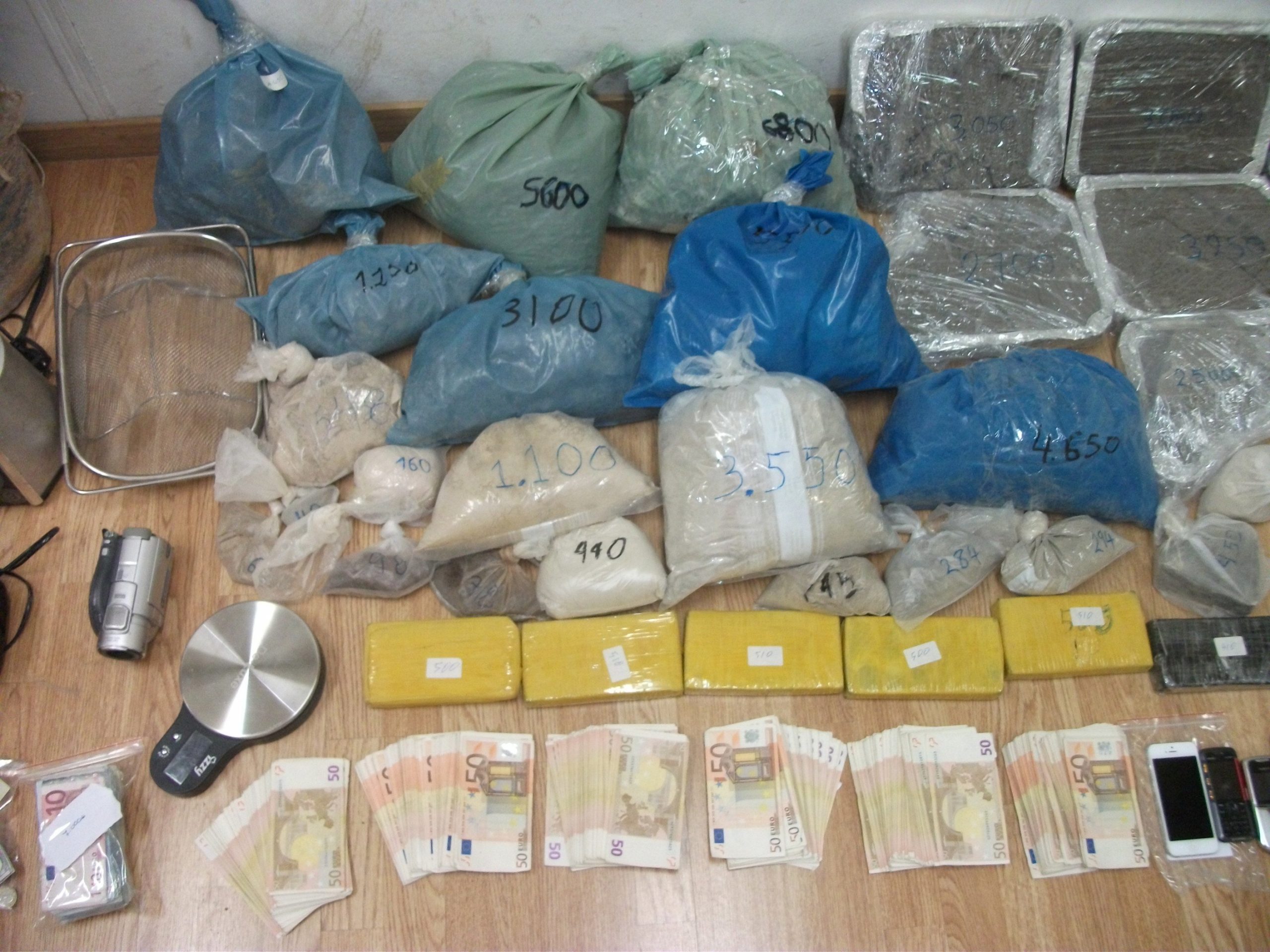 Συγκεκριμένα, βρέθηκαν συνολικά και κατασχέθηκαν 67 κιλά περίπου ηρωίνης ,24 γραμμάρια κοκαΐνης, 70 φυσίγγια των 7,62 mm και το χρηματικό ποσό των 37.205 ευρώ σε μετρητά.