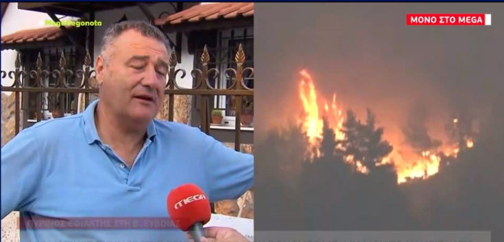 Δύο συγκλονιστικά βίντεο από τις Ροβιές και τις Γούβες στην Εύβοια, την ώρα που η πύρινη λαίλαπα έφθανε στα χωριά, παρουσίασε το κεντρικό δελτίο ειδήσεων του Mega.
