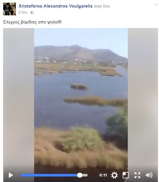 Το βίντεο έχει αναρτηθεί στο facebook στον προσωπικό λογαριασμό του Χριστόφορου Αλέξανδρου Βουλγαρέλη, ο οποίος μετέδιδε live την περιήγησή του με το ψεκαστικό ελικόπτερο.
