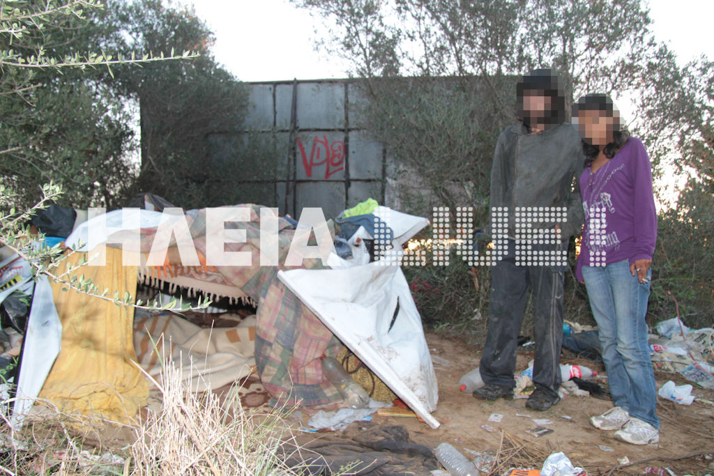 Σκηνές που ακόμα και αν τις αντικρίσουμε μπροστά μας, αδυνατούμε να πιστέψουμε πως είναι αλήθεια. Στον Πύργο, στις παρυφές της πόλης, μια πενταμελής οικογένεια με τρία μικρά παιδιά, ζει κάτω από μια διαφημιστική πινακίδα.