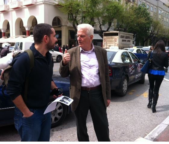 Μία πρωτότυπη διαμαρτυρία πραγματοποιούν αυτή την ώρα μέλη της Κίνησης “Μένουμε Θεσσαλονίκη”, οι οποίοι θα συμμετάσχουν στις εκλογές για το δήμο Θεσσαλονίκης.