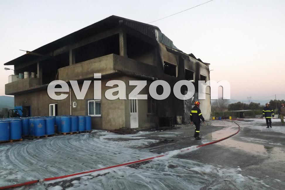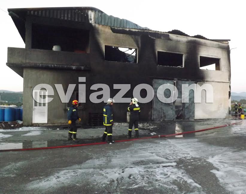 Εργοστάσιο στη Χαλκίδα καταστράφηκε ολοσχερώς από πυρκαγιά που ξέσπασε από άγνωστη μέχρι στιγμής αιτία, στα Πολιτικά Εύβοιας και σύμφωνα με το eviazoom ισχυρές δυνάμεις της Πυροσβεστικής έδωσαν μάχη για να μην επεκταθεί η φωτιά και σε άλλα εργοστάσια.