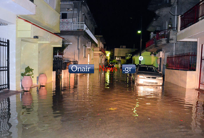 Πλημμύρισαν οι δρόμοι στο Μεσολόγγι.