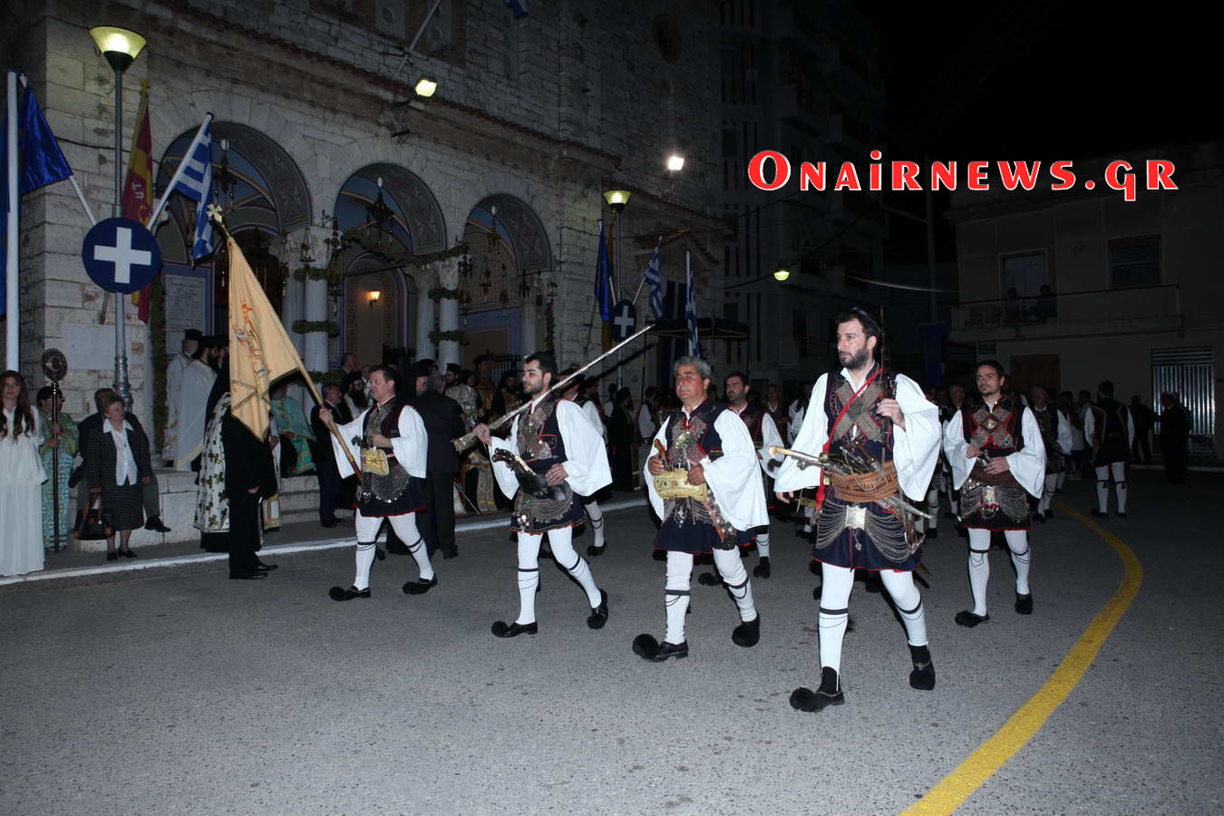 Η μεγαλειώδης πομπή ξεκίνησε περίπου στις 8 μ.μ. και ολοκληρώθηκε σχεδόν 2,5 ώρες αργότερα στον Κήπο των Ηρώων. Ακολούθησε επιμνημόσυνη δέηση, κατάθεση στεφάνων, η ομιλία του δημάρχου Μεσολογγίου και τέλος η αναπαράσταση της ανατίναξης του δημογέροντα Χρήστου Καψάλη.