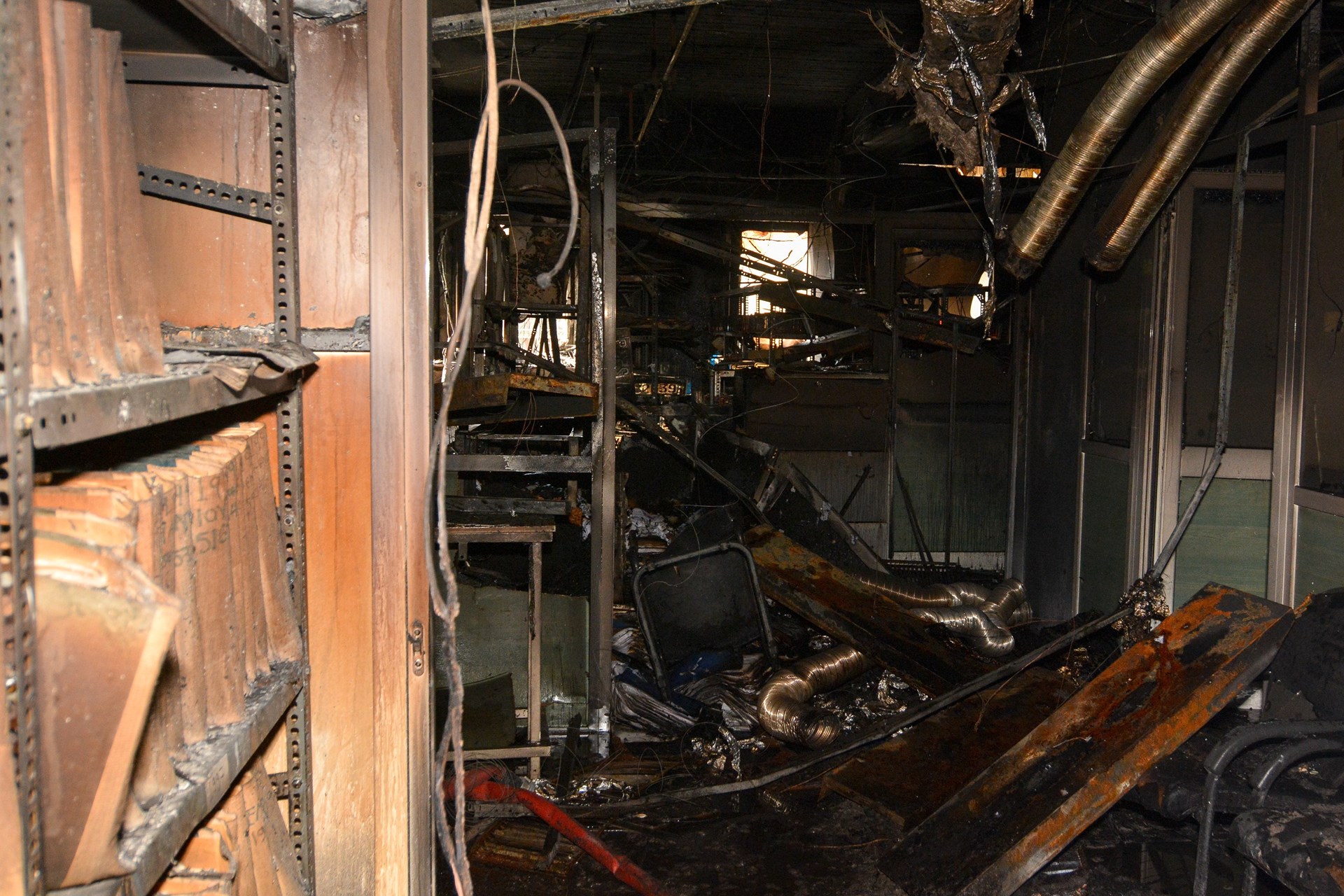Εκτεταμένες ζημιές και εικόνες καταστροφής άφησε πίσω της η μεγάλη πυρκαγιά που ξέσπασε τα ξημερώματα του Σαββάτου στο κτίριο όπου στεγάζεται η Β’ ΔΟΥ Λάρισας.