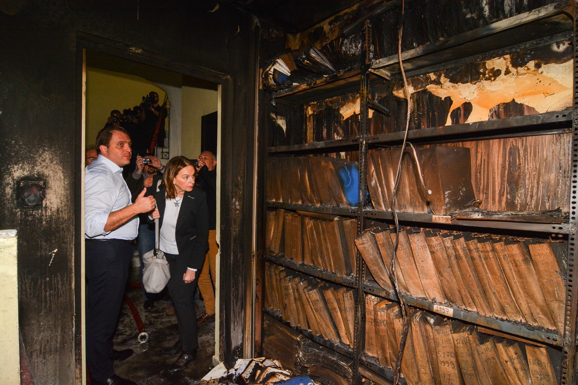 “Πιστεύω ως αρμόδια υπουργός και ως εκπρόσωπος της κυβέρνησης πως και η Πυροσβεστική και η Αστυνομία θα διαλευκάνουν όσο πιο γρήγορα το θέμα. Η καταστροφή από ότι με ενημέρωσε ο διοικητής είναι πολύ μεγάλη. Για εμάς προέχει ένα θέμα, το οποίο είναι να μπορέσουν από αύριο να εξυπηρετηθούν οι πολίτες. Αν χρειαστεί κάποια πράγματα να γίνονται χειρόγραφα, αλλά και να δοθούν κάποιες παρατάσεις θα συνεργαστούμε με τον διοικητή για να δούμε τι θα κάνουμε”. δήλωσε μεταξύ άλλων η κ. Παπανάτσιου.
