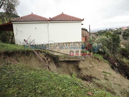 Σπίτι που βρίσκεται στο Σκεπαστό στην Πρέβεζα κοντεύει να καταρρεύσει καθώς, μετά από κατολίσθηση, υποχώρησε το έδαφος, με αποτέλεσμα τα θεμέλιά του να βρίσκονται κυριολεκτικά στον αέρα.