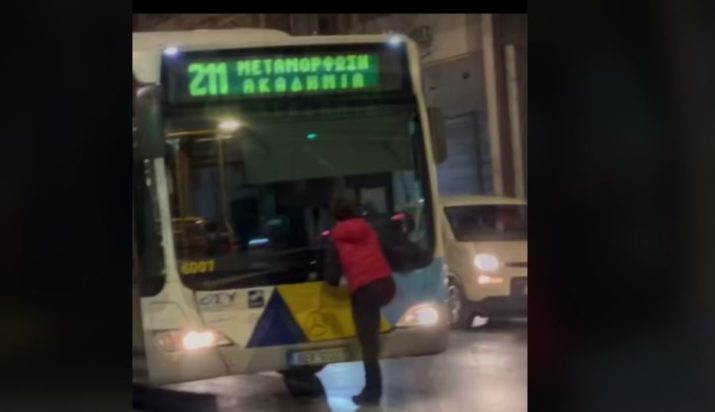 Ένα πρωτοφανές περιστατικό σημειώθηκε στην Αθήνα, με μια γυναίκα να κλωτσάει λεωφορείο το οποίο ήταν σταματημένο σε φανάρι.