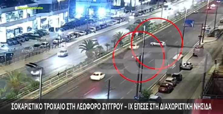 Το βίντεο – ντοκουμέντο από το τροχαίο που έγινε στις 22:30 το βράδυ της Παρασκευής στην Λεωφόρο Συγγρού που δημοσίευσε το Mega, προκαλεί σοκ.