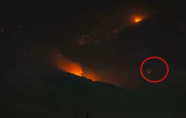 Όπως επισημαίνει το Up Stories, τεράστια εντύπωση προκαλεί η εμφάνιση νέων εστιών εκατοντάδες μέτρα μακριά από την κύρια εστία και κόντρα στην φορά του ανέμου σε τρία χρονικά σημεία του βίντεο (0:40, 1:02 και 1:35).