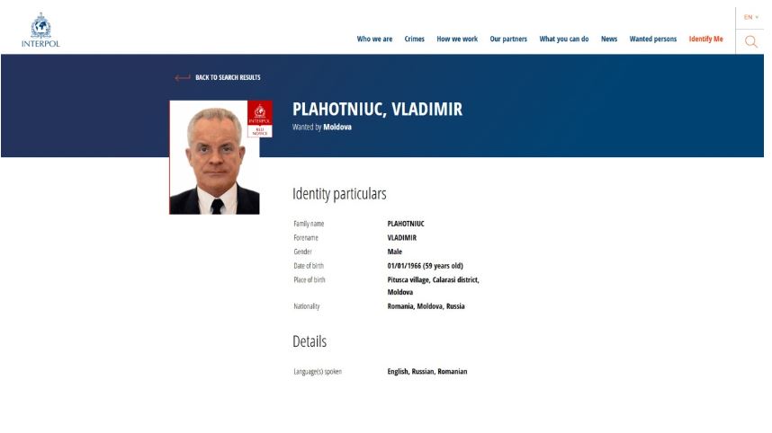 Ο Πλαχότνιουκ, που είχε υπηρετήσει τρεις φορές ως μέλος του κοινοβουλίου και θεωρείται ως ένας από τους ολιγάρχες της Μολδαβίας, κατηγορείται για εγκληματική οργάνωση, απάτη και ξέπλυμα χρήματος, ενώ σε βάρος του εκκρεμούσε ερυθρά αγγελία της Interpol.