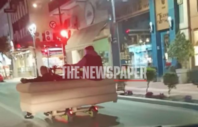 Σύμφωνα με αυτόπτες μάρτυρες, οι νεαροί νοίκιασαν δύο ηλεκτρικά πατίνια απ’ αυτά που έχουν κάνει πρόσφατα την εμφάνισή τους στην πόλη στο πλαίσιο πιλοτικού προγράμματος. Ωστόσο, αντί να τα χρησιμοποιήσουν σύμφωνα με τους όρους χρήσης και τους κανόνες κυκλοφορίας, τοποθέτησαν επάνω τους μια ξύλινη παλέτα, και στη συνέχεια έβαλαν πάνω έναν καναπέ.