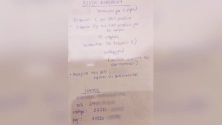 Ωστόσο πάνω στη χειρόγραφη συνταγή αναφέρεται το τηλέφωνό του, ενώ το κοκτέιλ φαρμάκων που αναγράφεται είναι το ίδιο με αυτό που προτείνει στις ομιλίες του.