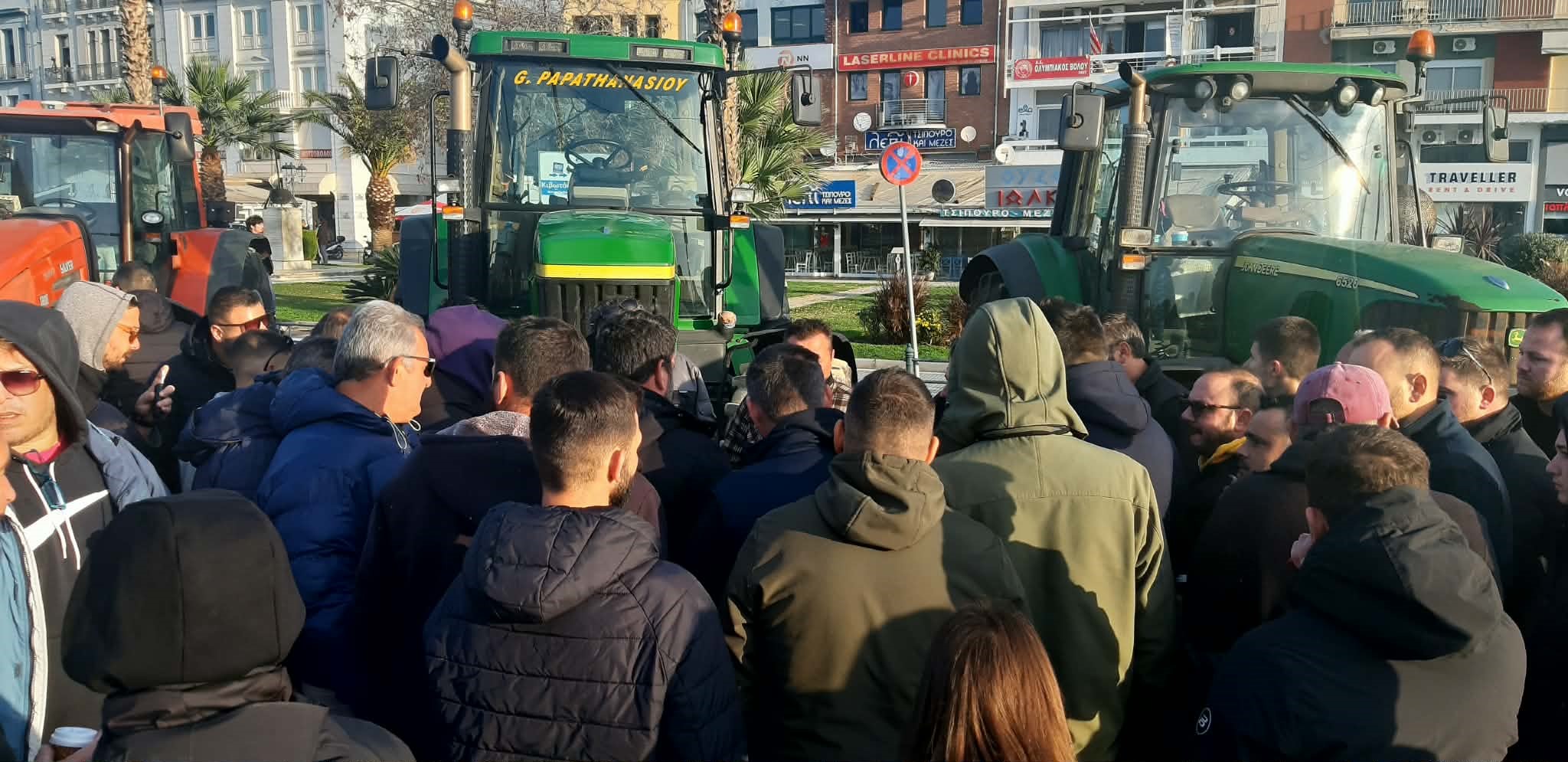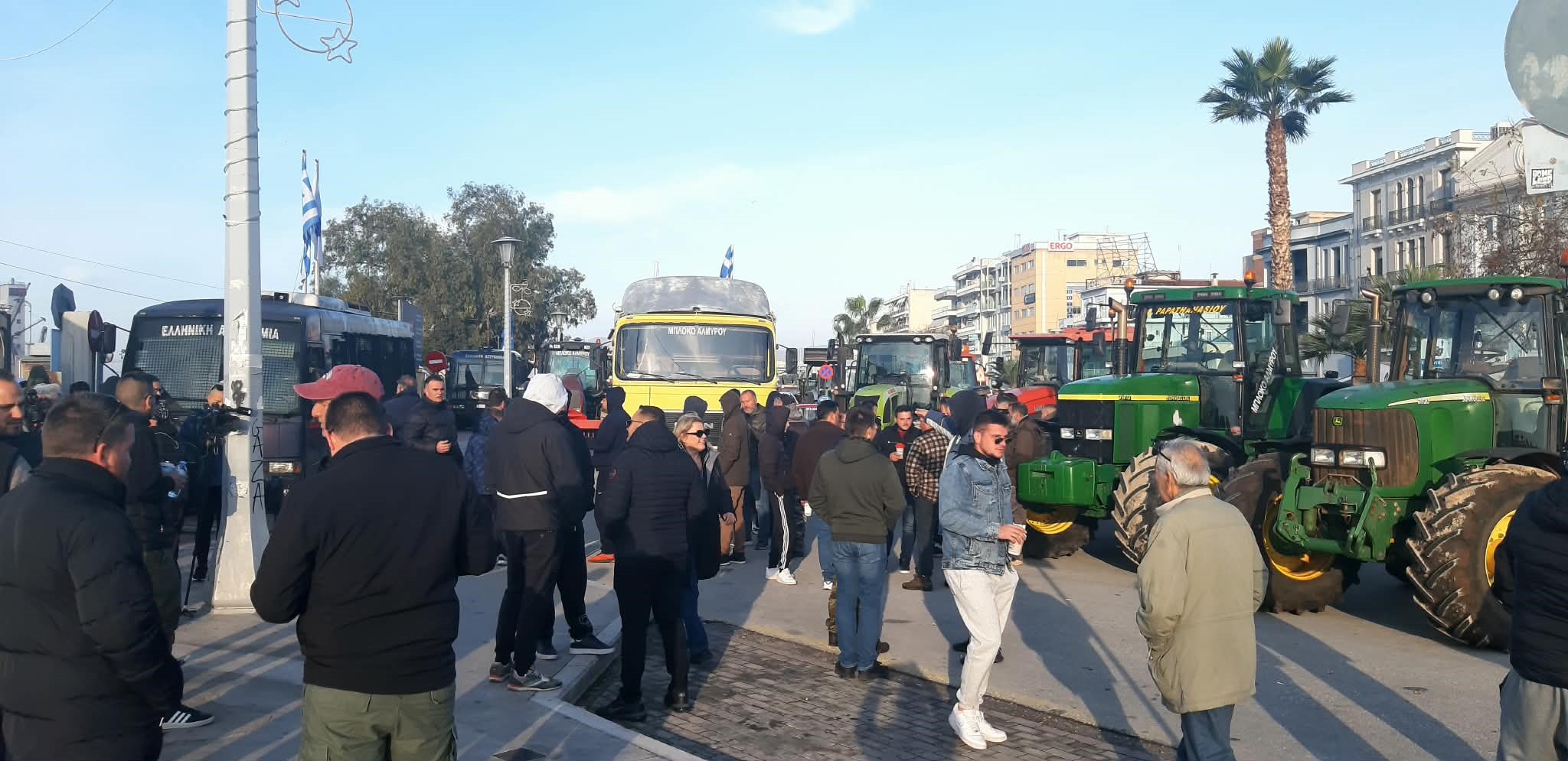 Εκπρόσωπος των αγροτών από τις Μικροθήβες ζήτησε να αποχωρήσουν τα ΜΑΤ για να πραγματοποιηθεί η ειρηνική τους διαμαρτυρία: «Είμαστε από το μπλόκο Μικροθηβών. Δεν έχουμε έρθει εδώ για φασαρία. Αυτό που βλέπουμε εδώ είναι ανεπίτρεπτο. Υπάρχουν ήδη δέκα διμοιρίες των ΜΑΤ, για να κάνουν τι; Να σταματήσουν ποιον; Εδώ είμαστε στο επιβατικό λιμάνι. Όλη η κοινωνία είναι μαζί μας, σε λίγο θα είναι αγρότες από όλη τη Θεσσαλία και όλες οι κοινωνικές ομάδες στο πλευρό μας. Θέλουμε να σε ένδειξη καλής θέλησης να αποχωρήσουν τα τρακτέρ από εδώ και να κινηθούμε στο εμπορικό κομμάτι του λιμανιού και να αποκλείσουμε αυτό. Και εσείς σε ένδειξη καλής θέλησης να πάρετε τις κλούβες και να αφήσετε τον κόσμο να διαμαρτυρηθεί ειρηνικά. Αυτή είναι η απόφασή μας».