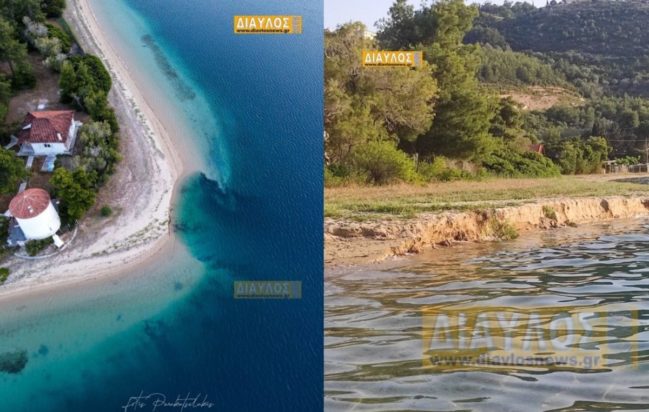 Όπως φαίνεται στις φωτογραφίες του diavlosnews.gr, η παραλία στο Μύλο των Γιάλτρων στη Βόρεια Εύβοια υπέστη καθίζηση με αποτέλεσμα τμήμα της άμμου να υποχωρήσει και να βυθιστεί αλλάζοντας εντελώς την όψη της συγκεκριμένης παραλίας.