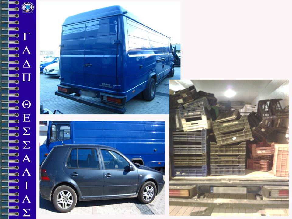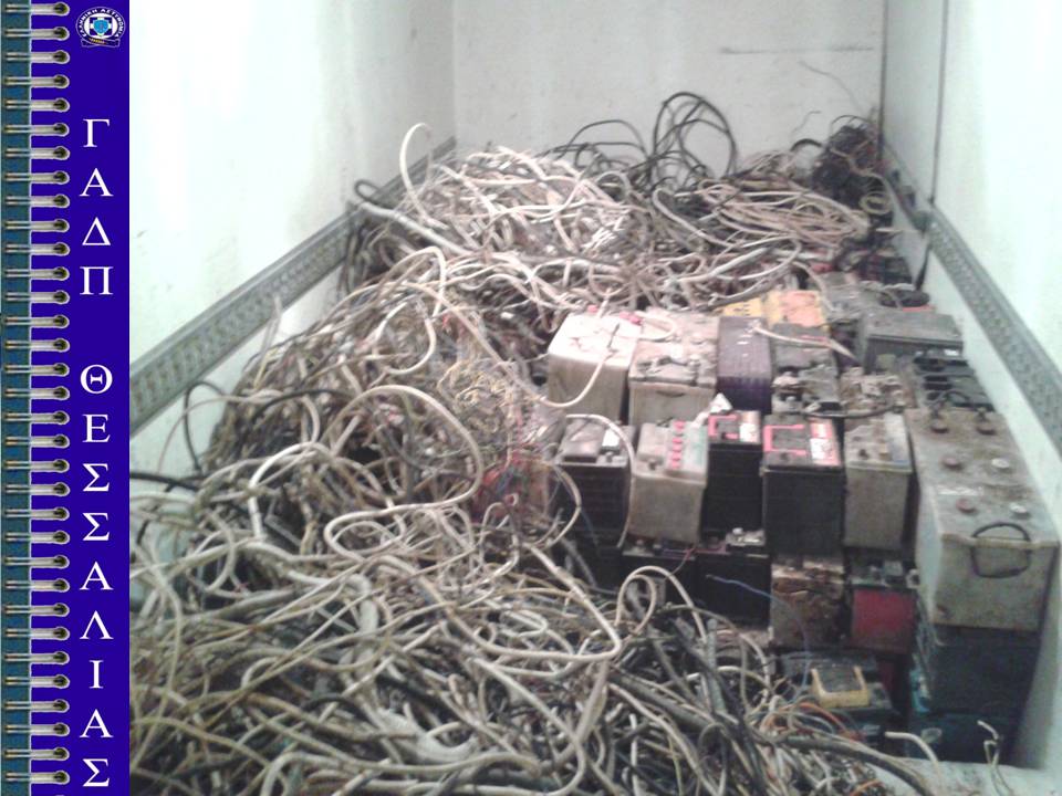 Συνελήφθησαν το βράδυ του Σαββάτου στην Π.Α.Θ.Ε., στα διόδια Μακρυχωρίου Λάρισας, από αστυνομικούς του Τμήματος Δίωξης Λαθρομετανάστευσης Γόννων της Αστυνομικής Διεύθυνσης Λάρισας, πέντε Βούλγαροι, ηλικίας 34, 24, 30, 35 και 43 ετών, οι οποίοι μετέφεραν με φορτηγό μεγάλο αριθμό από κλεμμένες μπαταρίες οχημάτων, καθώς και κλεμμένα καλώδια χαλκού.