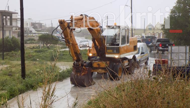 Σε πολλά σημεία έκλεισαν οι δρόμοι και τα μηχανήματα δουλεύουν πυρετωδώς για να καθαρίσουν τους δρόμους στο επαρχιακό δίκτυο στη Ρίζα, στο χωριό Χριστό, στη Θρυπτή και στο επαρχιακό Ιεράπετρας Μακρύ Γιαλού στη θέση Αχλιά.