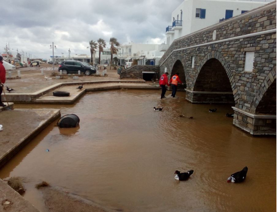 Η Υπηρεσία Καθαριότητας του Δήμου Πάρου και εθελοντές της Ομάδας Διάσωσης εργάζονται από χθες προκειμένου να αποκαταστήσουν τις ζημιές και να καθαρίσουν τις πληγείσες περιοχές.