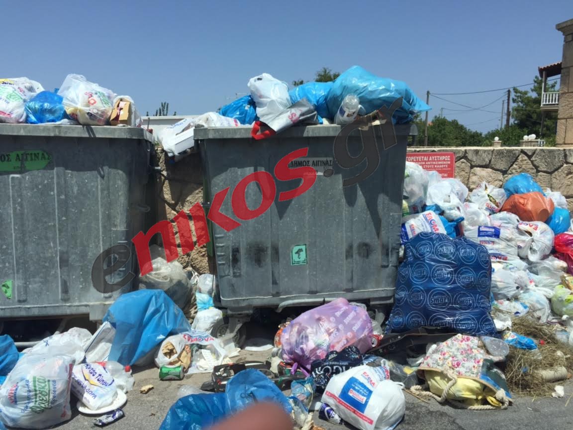 Τα απορρίμματα σχηματίζουν “λόφους” στην Αίγινα και σε συνδυασμό με τις υψηλές θερμοκρασίες, δημιουργούν μια αποπνικτική ατμόσφαιρα.