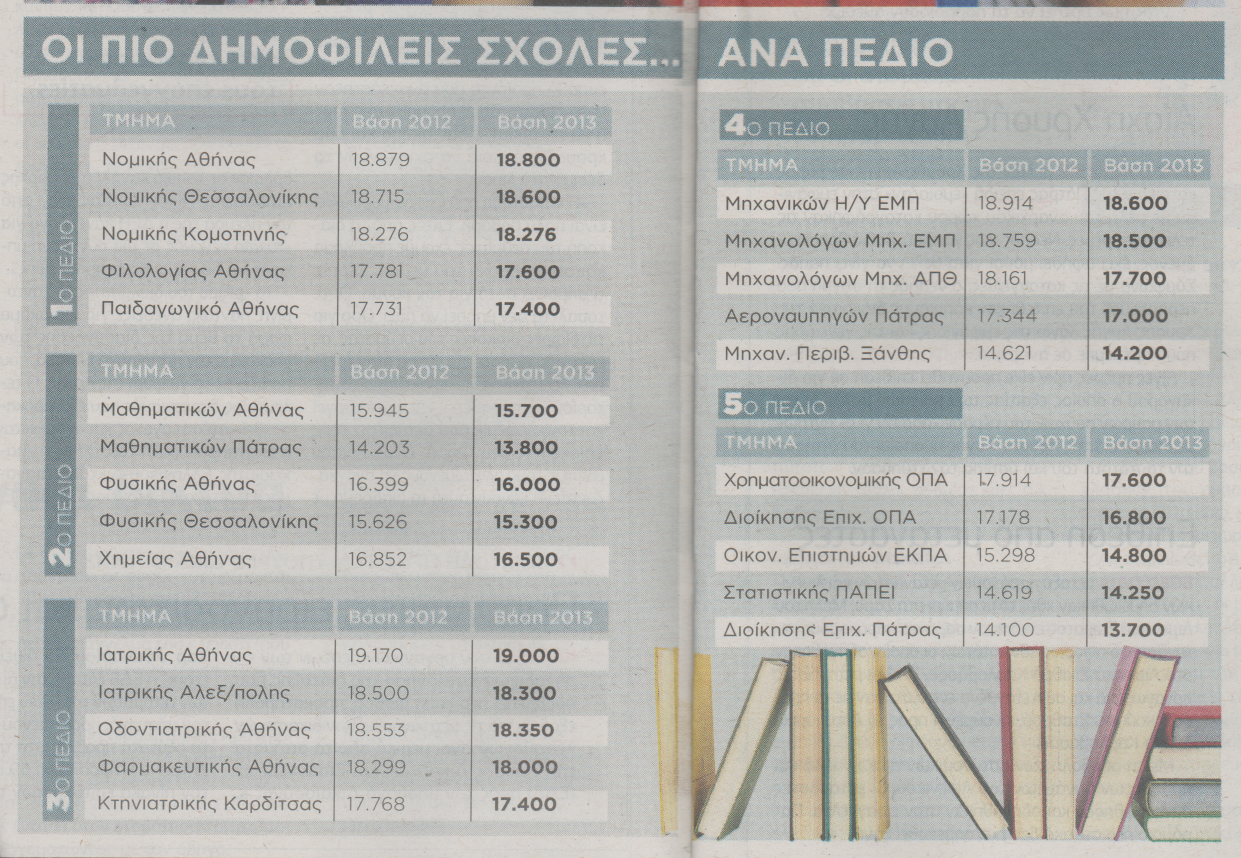 Παρόμοια κατάσταη επικρατεί και στις σχολές που φιλοξενούνται στην επαρχία, με πτώση στις βάσεις σε Θεσσαλονικη, Πάτρα και Ξάνθη.