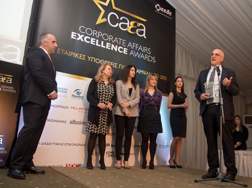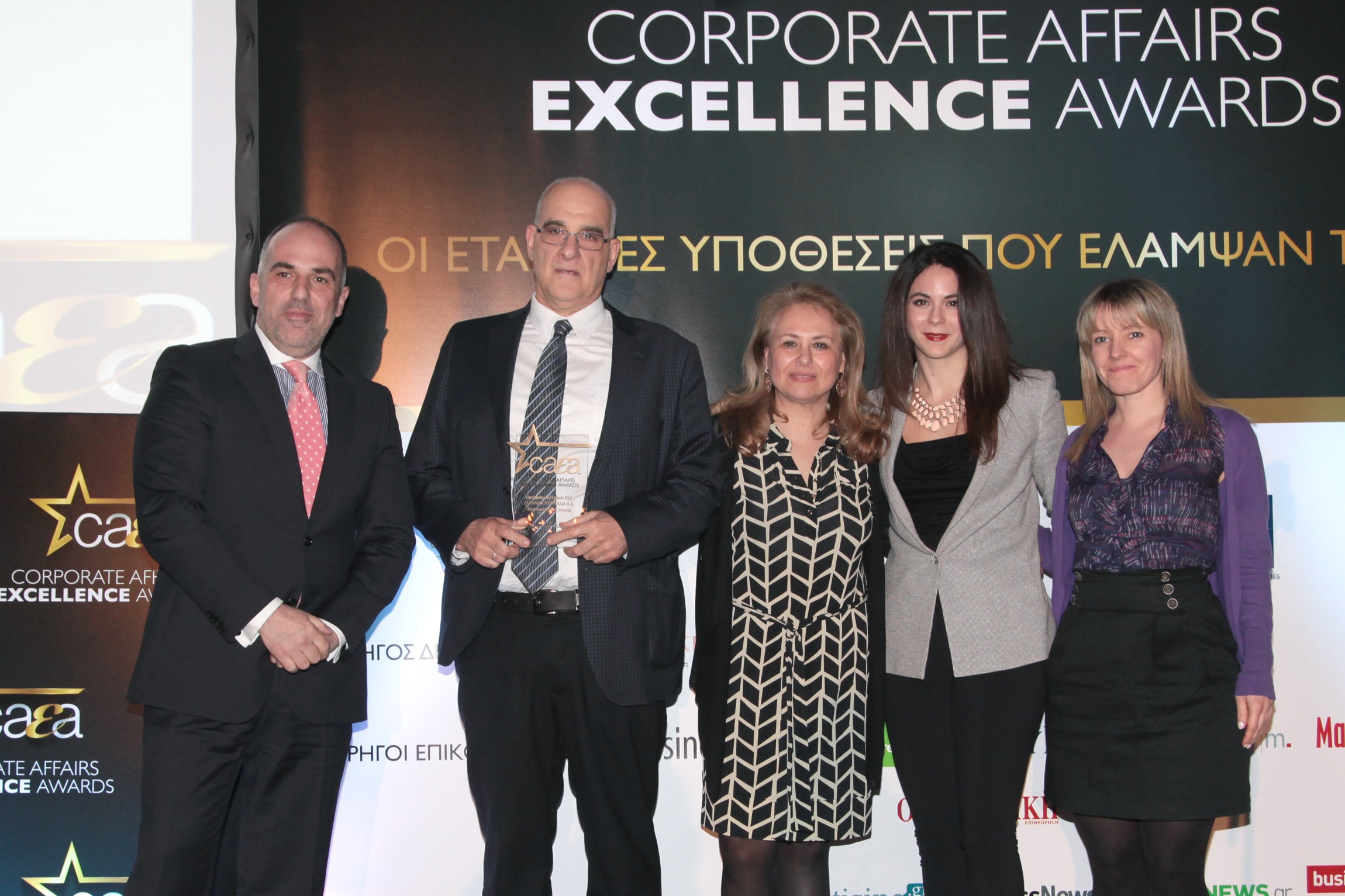 To Βραβείο παρέλαβε από τον Γενικό Γραμματέα της Ένωσης Εταιριών Διαφήμισης & Επικοινωνίας κ. Δημήτρη Ρούλια, ο Διευθυντής Εταιρικών Σχέσεων του Ομίλου ΕΛΛΗΝΙΚΑ ΠΕΤΡΕΛΑΙΑ κ. Γιάννης Κορωναίος, έχοντας δίπλα του την Δ/ντρια Εταιρικής Κοινωνικής Ευθύνης κα Ράνια Σουλάκη και τις κυρίες Αθηνά Μπουρτσάλα και Ευτυχία Βαρθαλίτη από την ίδια Διεύθυνση.