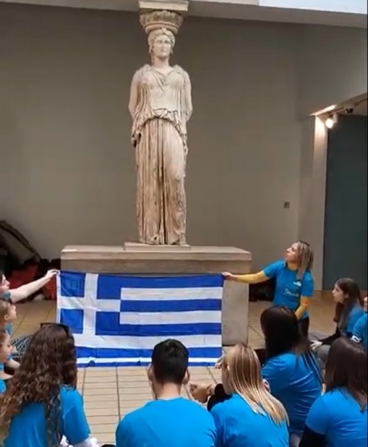 Μαθητές από την Κρήτη που βρέθηκαν στο Λονδίνο στο πλαίσιο εκπαιδευτικής εκδρομής θέλησαν να διαμαρτυρηθούν με έναν διαφορετικό και συγκινητικό τρόπο για την παραμονή των Γλυπτών του Παρθενώνα στο Βρετανικό μουσείο, σύμφωνα με το cretalive.gr.