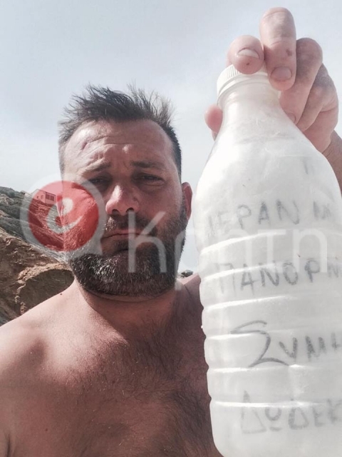 «Μόλις είχα κάνει την πρώτη βουτιά στη θάλασσα και χαλάρωνα, ώσπου διαπίστωσα ότι  δίπλα μου επέπλεε ένα λευκό πλαστικό μπουκάλι. Αρχικά νόμιζα ότι ήταν σκουπίδι και είπα να το βγάλω  έξω, αλλά φθάνοντας κατάλαβα, ότι ήταν κάτι άλλο», αναφέρει στο ekriti.gr  ο λουόμενος που βρήκε το μπουκαλάκι με το τάμα.