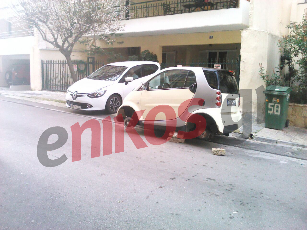 Δεν πίστευε τα μάτια του ένας οδηγός στην Καισαριανή όταν ξυπνώντας το πρωί για να πάει στη δουλειά του αντίκρισε το αμάξι του να αιωρείται πάνω σε δυο πέτρες χωρίς ρόδες. Όπως φαίνεται στις φωτογραφίες που έστειλε ο αναγνώστης του enikos.gr, άγνωστοι είχαν αφαιρέσει τους τροχούς από το ΙΧ αυτοκίνητο και το είχαν αφήσει κυριολεκτικά στον «αέρα».