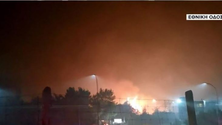 Όπως φαίνεται στα πλάνα οι φλόγες είναι πολύ ψηλές, δεκάδων μέτρων σε διάφορα σημεία της Εθνικής Οδού και οι πυροσβέστες προσπαθούν να μην την αφήσουν να περάσουν στη βιομηχανική ζώνη, η οποία βρίσκεται υπό απειλή.