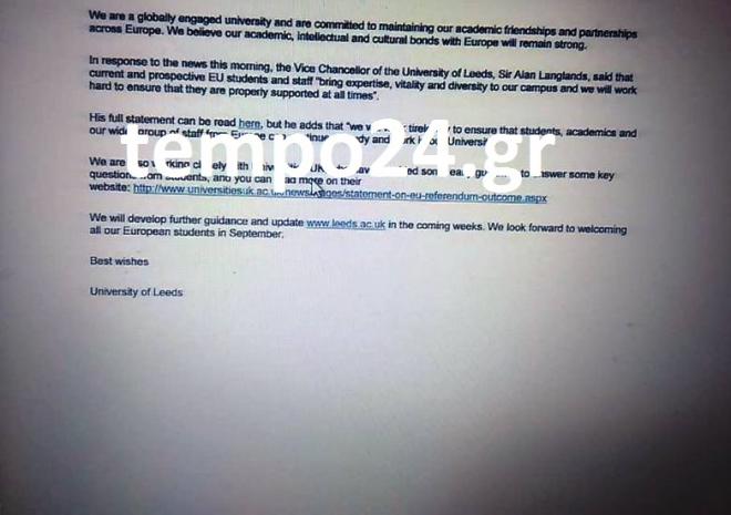 Δείτε εδώ την επιστολή γνωστού βρετανικού πανεπιστημίου: